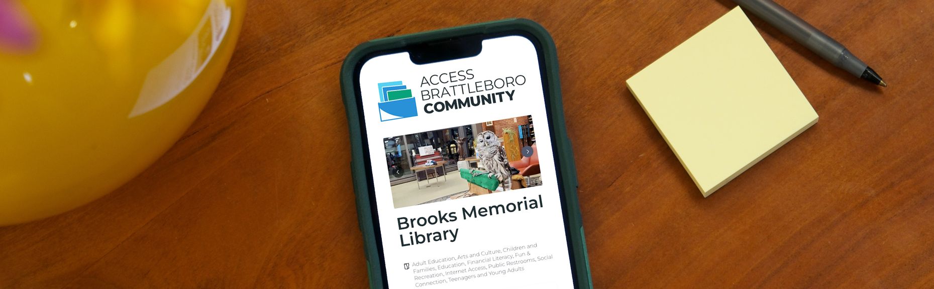 The community is encouraged to visit the Access Brattleboro Community directory from the Brooks Memorial Library website at brookslibraryvt.org/communityabc.